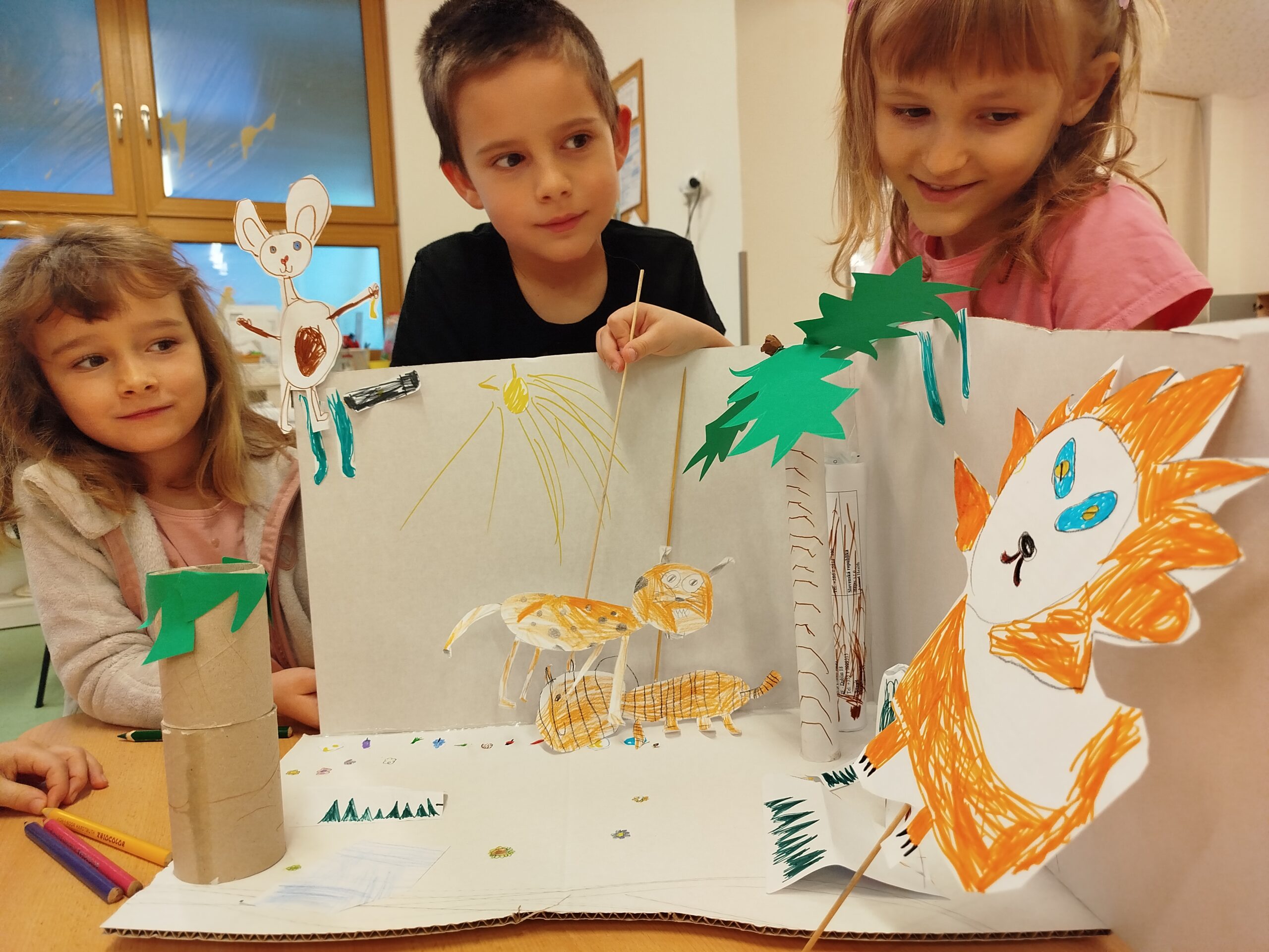 Z knížek jsme si půjčili pohádky a trochu si s nimi pohráli…Ze spisovatelů se stali kulisáci a herci. …