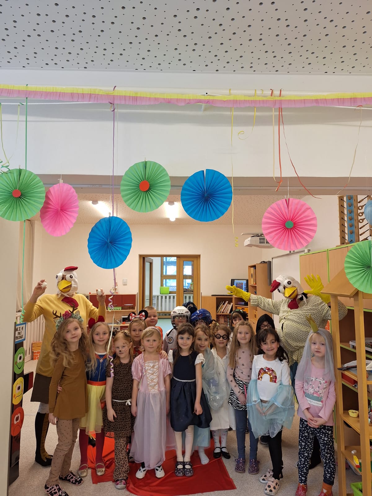 Tak jsme tady po jarních prázdninách….Abychom se do školky těšili, přivítá nás KARNEVAL 🤡. Školkou rejdí princezny, víly, spidermanové a hokejisti, občas narazíte na policajta, jak se dává do řeči se zombíkem😉 A za co šly tentokrát paní učitelky? Za slepice😆🐔Budou míchaná vajíčka🥚🍳