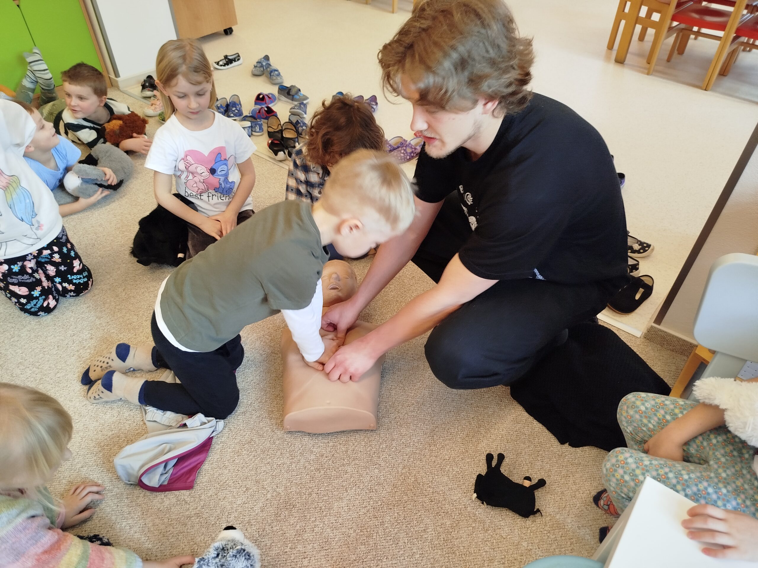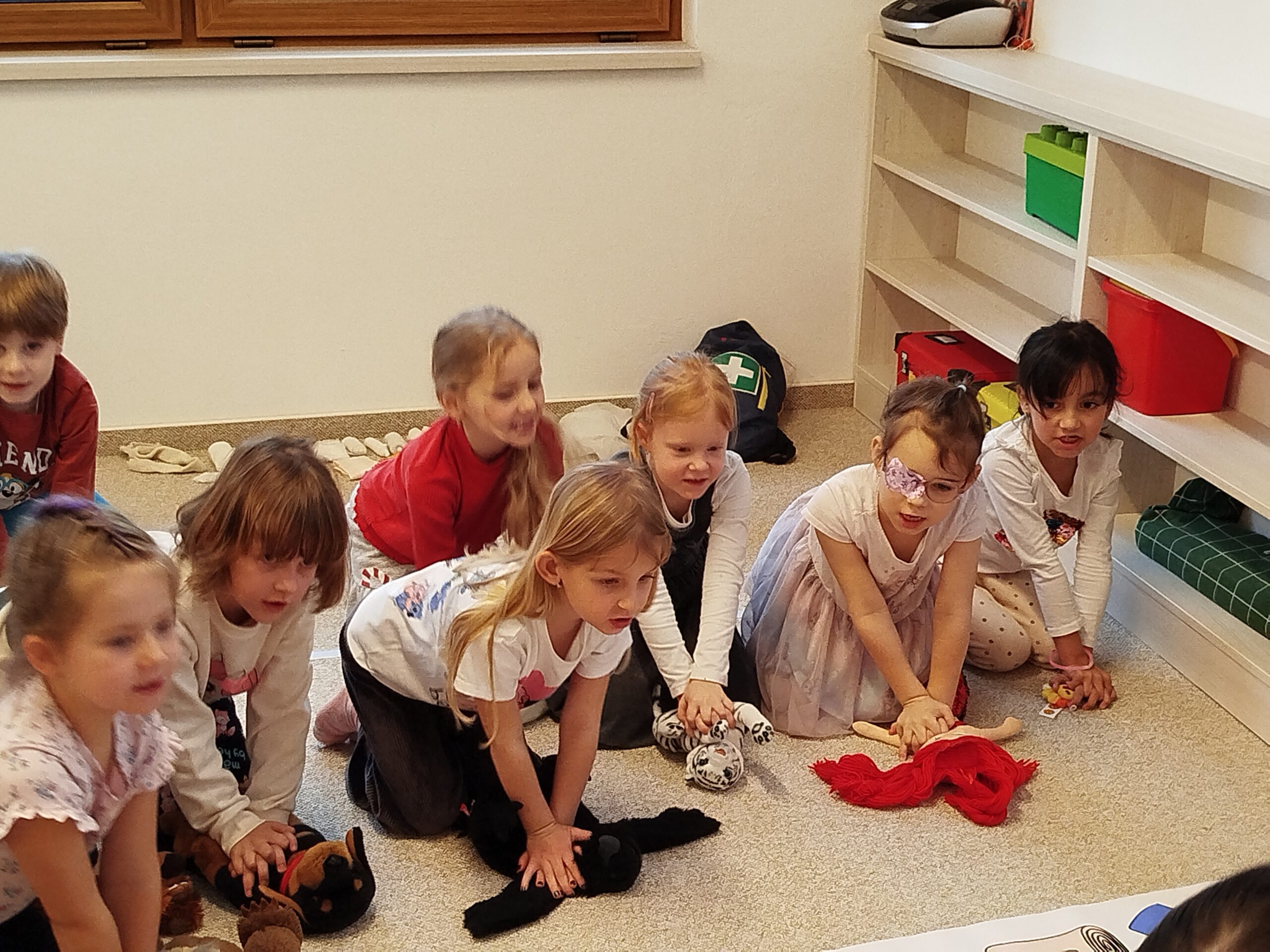 MALÍ ZÁCHRANÁŘI – do školky k nám přišli zdravotní sestra se zdravotním bratrem a naučili nás, jak se máme zachovat, kdyby se někomu v okolí něco stalo. Kam máme zavolat, co máme říct a jak ošetřit zraněného. Na pomoc jsme si vzali naše věrné kamarády plyšáky, kteří se proměnili v poslušné pacienty.🩹💉💊😷