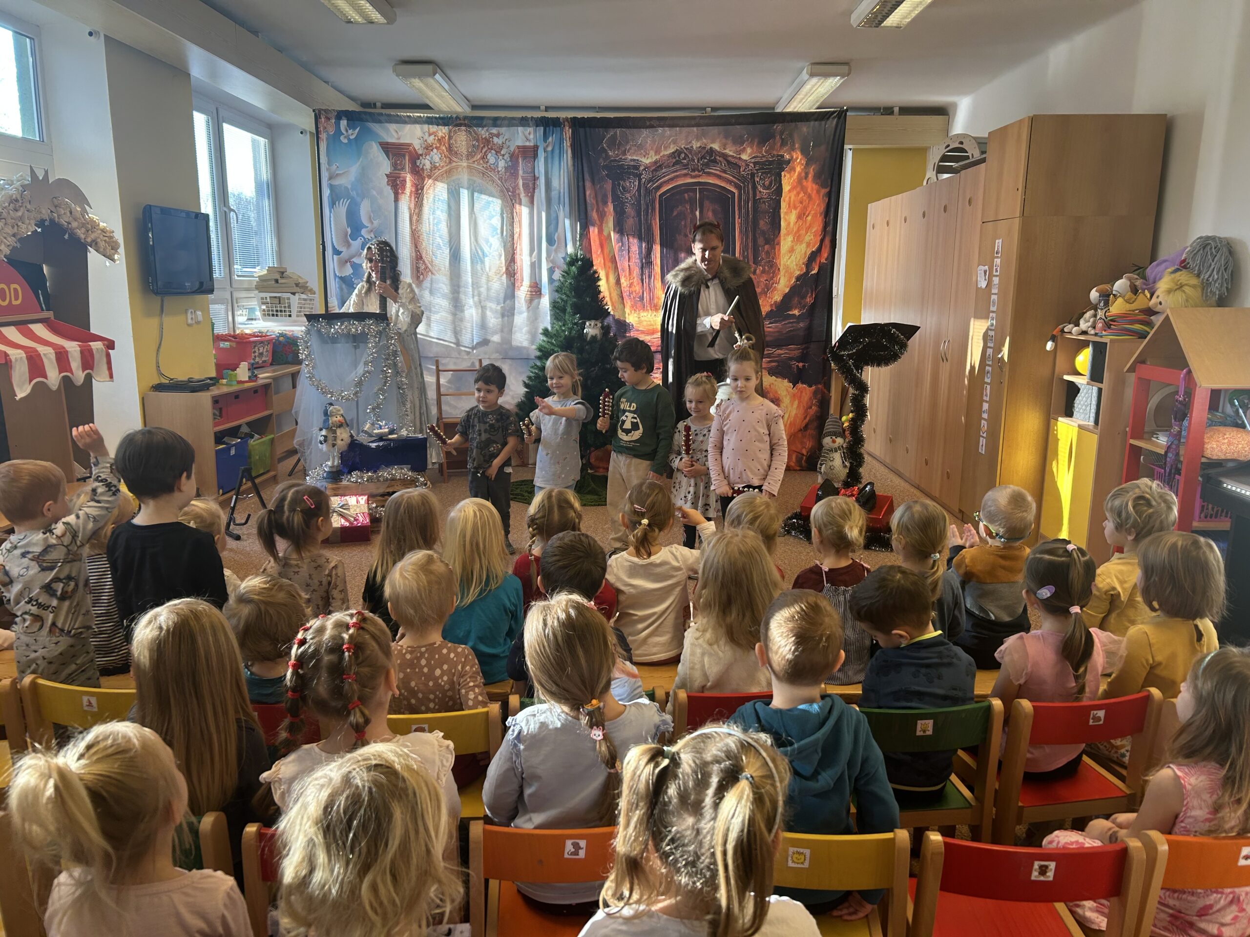 Listopad byl také bohatý na kulturní a výchovné programy. Navštívili jsme krásné divadelní představení o pekle a nebi, které děti velmi zaujalo a pomohlo jim lépe porozumět tématům dobra, zla a spravedlnosti.