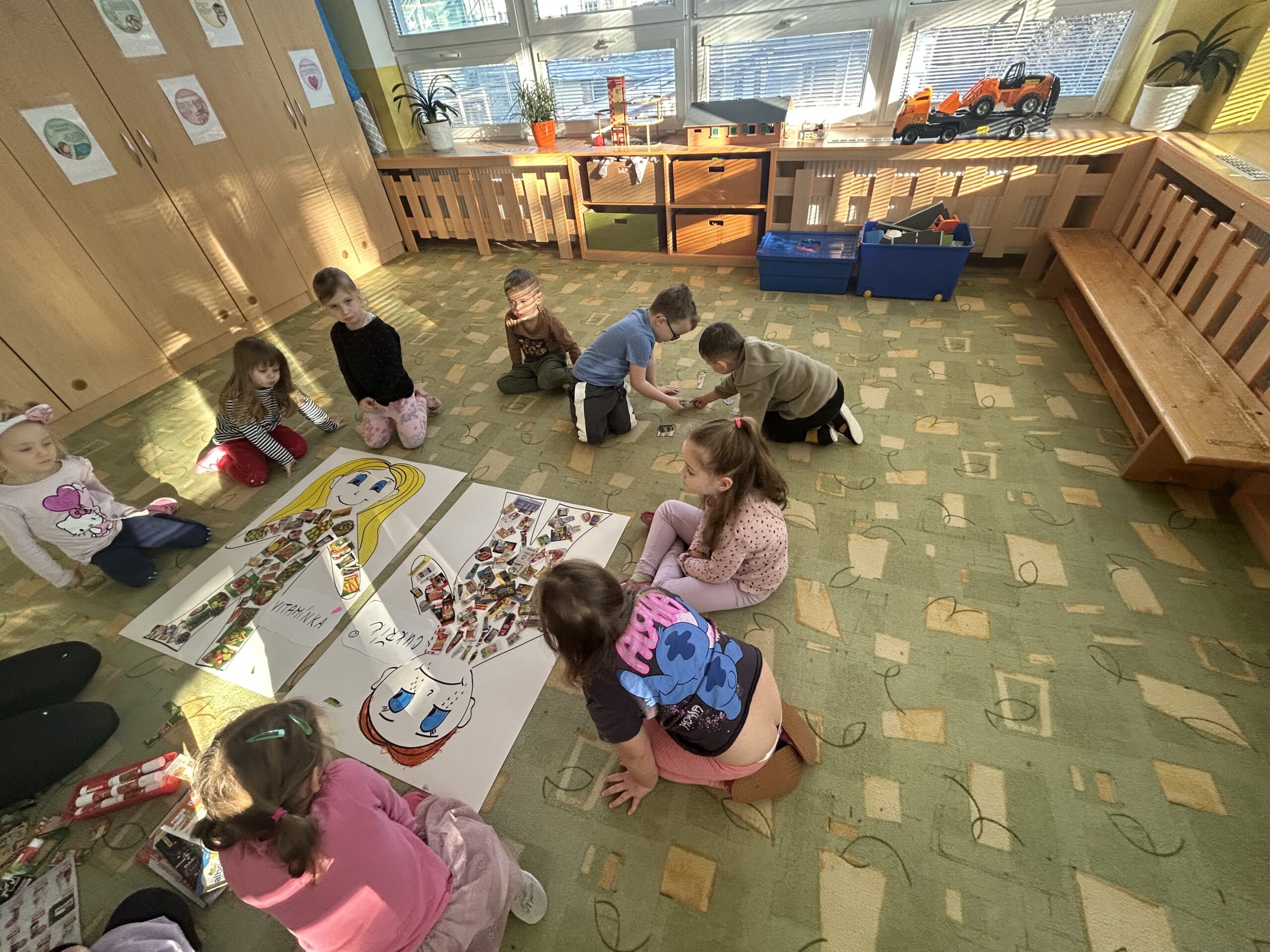 Program nám zpestřila i vzdělávací aktivita: „Zdravík dětem“ s příběhem: Jak se Jedlík skamarádil se Zdravíkem. Společně jsme si připomněli, co našemu tělu prospívá, proč je důležité jíst zdravé potraviny, dostatečně pít a hýbat se. Děti se formou hry učily rozlišovat, co je pro ně zdravé a co by měly jíst jen výjimečně.